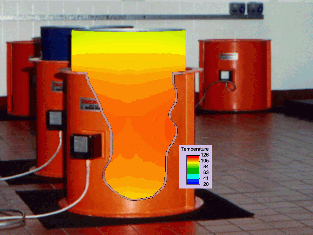 An unusual but significant feature of the THERMOSAFE Induction Heater in use is that it is always cooler than the surface of the drum being heated. This makes it much safer to handle than conventional radiant electric heating devices. There are no elements to replace, as heat is produced in the drum wall due to the electro-magnetic field produced by an encapsulated copper coil.